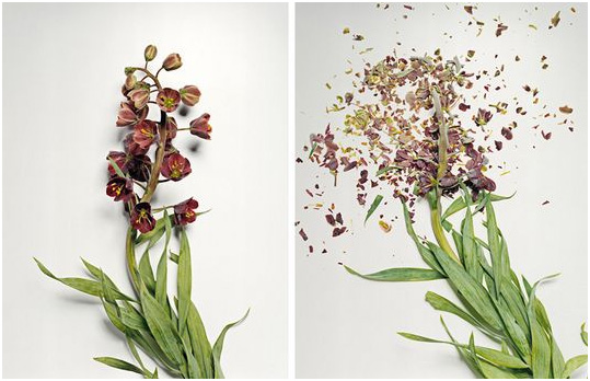 有人說(shuō),女孩最幸福的時(shí)刻之一就是收到美麗的鮮花,沒(méi)有女孩子不愛(ài)花。花兒在綻放的時(shí)候是如此絢爛美麗,凋零的時(shí)候往往讓人感到惋惜,我們常常不忍心看到花瓣凋零,更不忍看到花瓣破碎。其實(shí)破碎也是另一種美。攝影師Jon Shireman似乎對(duì)破碎的花非常感興趣,他將采集來(lái)的花經(jīng)過(guò)特殊處理再將花瓣擊碎,拍攝了一組打破傳統(tǒng)的的靜態(tài)又不失美感的攝影作品,破碎的花也有與眾不同的美麗。
