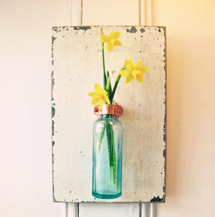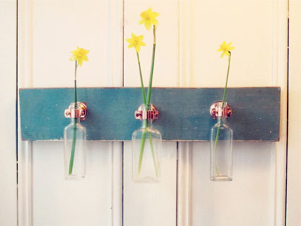 開始獨具創意的DIY吧,—墻上花瓶,木板噴上自己喜歡的顏色,在木板上釘上特制金屬扣夾住瓶口,然后對木板進行一些創作,噴上色彩,寫上文字,或釘上掛鉤……最后在瓶子里放入喜歡的花。或許你該會有這樣的想象,推開門,拖著有點疲憊的身心走進家門,順著墻壁走,拐角處驚喜地發現,墻壁上那簇花盛開了……