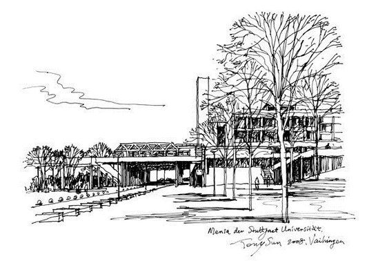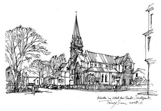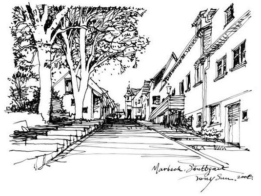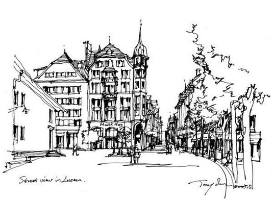 碳素的黑色,筆尖在紙上游走,摩挲著,勾勒出一幅幅畫卷。筆下的場景和圖片上畢竟不同,但有著我的情愫,滿滿縈繞。